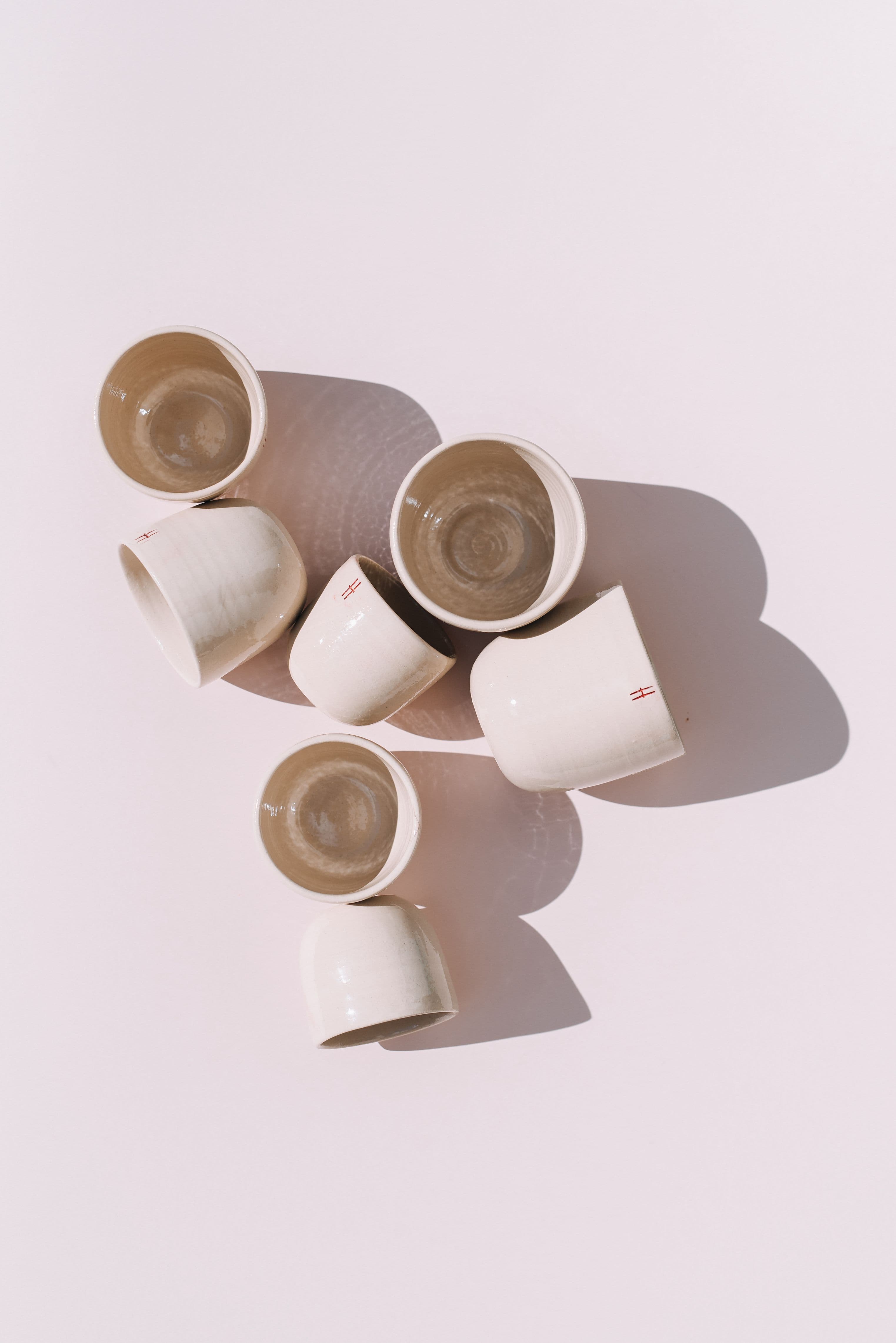 About projectNa začátku roku 2022 Mitte přišlo s poptávkou na světlou čistou hlínu a logo v červené barvě umístěné po straně hrníčku, aby bylo dobře viditelné. Hodně jsme diskutovali o tom, jestli vytvořit hrnky s pruhem bílé glazury svrchu, na které sice více vynikne logo, ale designu to na druhou stranu sebere subtilnost a ztratí na rafinovanosti. Nakonec jsme jim nabídli několik vzorků, kde jsme argumentovali pro čistou hlinu s transparentní glazurou a červeným logem. Hrnky jsme vyráběli ve třech velikostech: espresso, cappuccino a latte, všechny s kónickým tvarem pro krásné kreslení na pěnu kávy. Zakázku jsme rozdělili na několik fází a obměňovali hrnky postupně v jednotlivých pobočkách. Na Vánoce 2022 jsme pro Mitte vyrobili speciální edici s červeným dekorem a velikostí cappuccino, která byla k dostání jako merch kaváren.